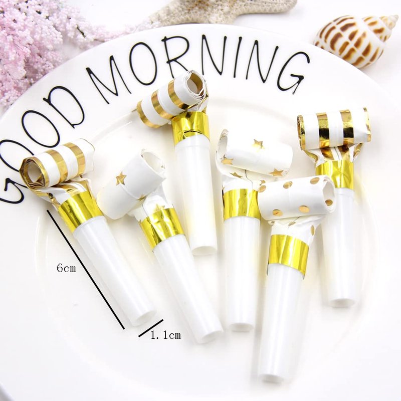 lasenersm 30 Pieces Party Blower Noisemakers Blowouts Whistles Party Squawkers Fringed Noise Maker Blowouts Noisemakers Funny Party Blowouts Blowers Musical Blowouts Party Horns Noisemakers, Golden