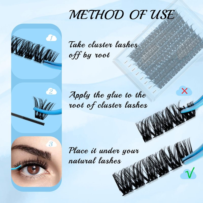 - Soft & Lightweight: Super thin band lash clusters to ensure the lashes will not hurt your eyes. Also we have upgraded our eyelash materials. Our cluster lashes are soft and fluffy just like natural lashes. No worry about the plastic look.