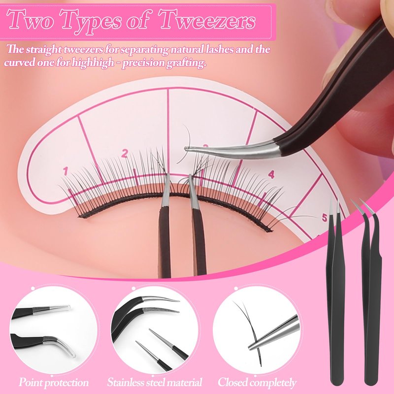 - [Extra Eyelash Extension tools for Exercise] The eyelashes are soft and like natural eyelash, and tweezers can accurately help you grip the eyelashes, which are convenient during a lash set. Five-point practice isolation paper can also ensure eyelash isolation quickly. Very realistic and great for people trying to learn how to do lashes !