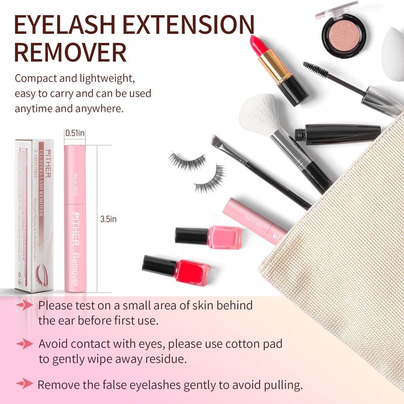 - Wide Application: The net content of the lash extension glue remover is 5ml, and the bottle size is 3.5x0.51x0.51inches. It is small and lightweight, which can be carried with you. It is not only suitable for removing eyelash clusters, single eyelashes, strip false eyelashes, etc. at home, but also for business trips and travels. It can be used at any time, which is practical and convenient.