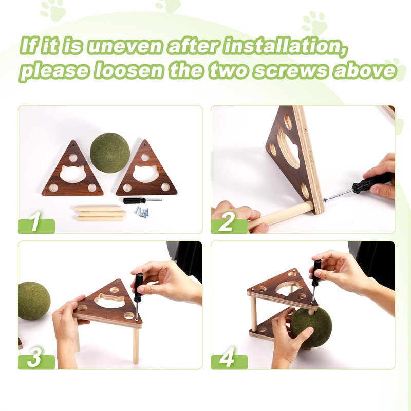 - Packing list: You will receive 1 catnip ball, a wooden stand that you need to assemble yourself, 1 screwdriver and 7 screws, suitable for cats to play indoors and outdoors.