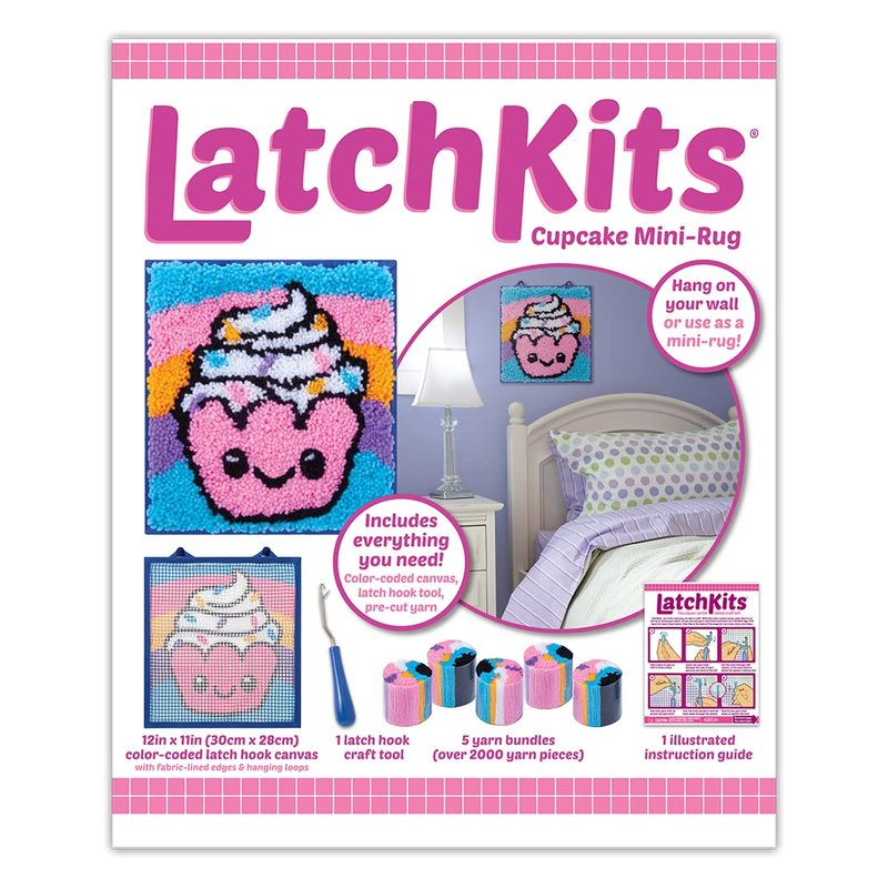 LatchKits Latch Hook Kit for Wall Hangings & Mini-Rugs - Cupcake - Craft Kit with Easy, Color-Coded Canvas, Pre-Cut Yarn & Latch Hook Tool - Perfect DIY Craft for Kids - Ages 6+