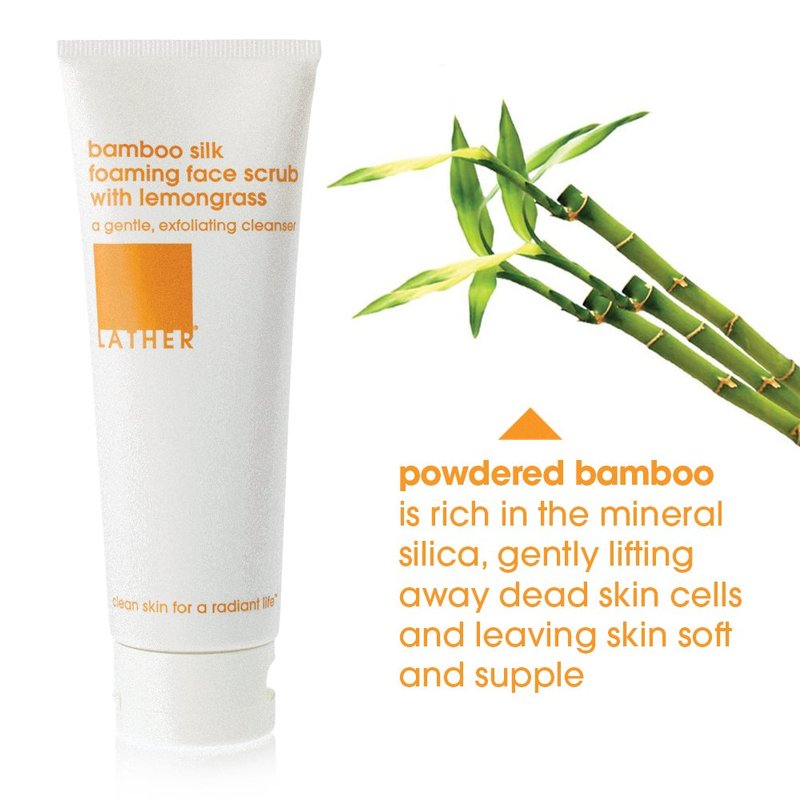 - SYNTHETIC FRAGRANCE FREE: LATHER Bamboo Silk Foaming Face Scrub with Lemongrass Exfoliating Face Wash is a natural face scrub and wash free from synthetic fragrance and dyes; Made in the USA from sustainably sourced ingredients