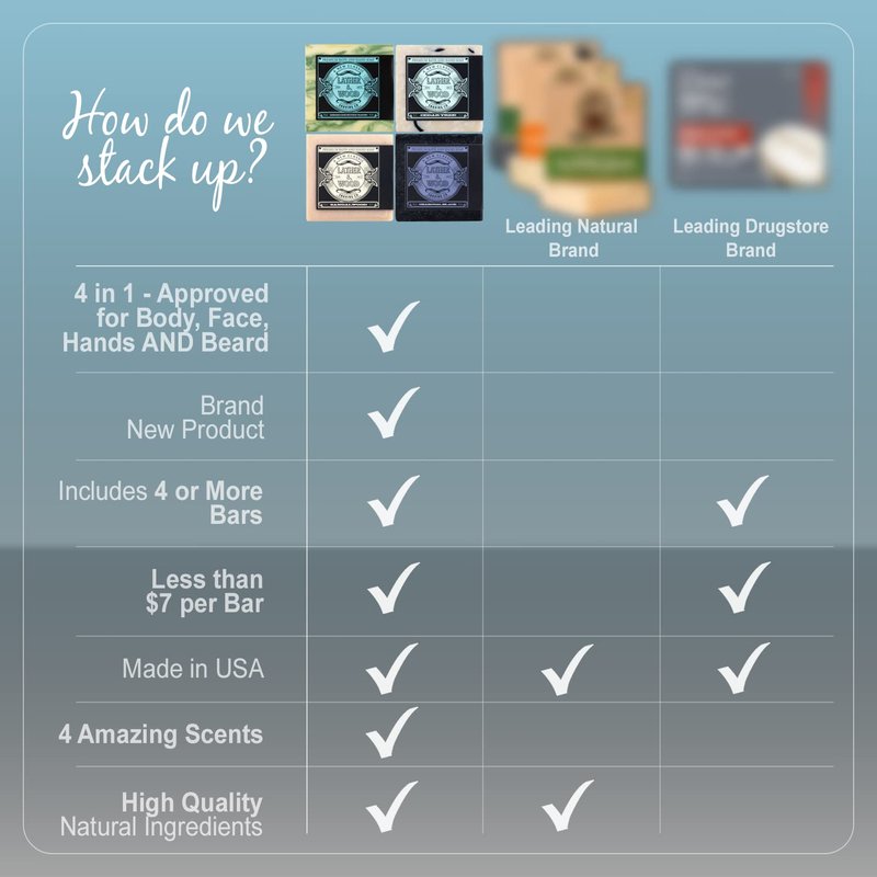 - Get more for less. Compared us to the others, we give you more soap for less, they smell AMAZING, don’t dry out your skin, and you DON’T HAVE TO COMPROMISE quality or size!