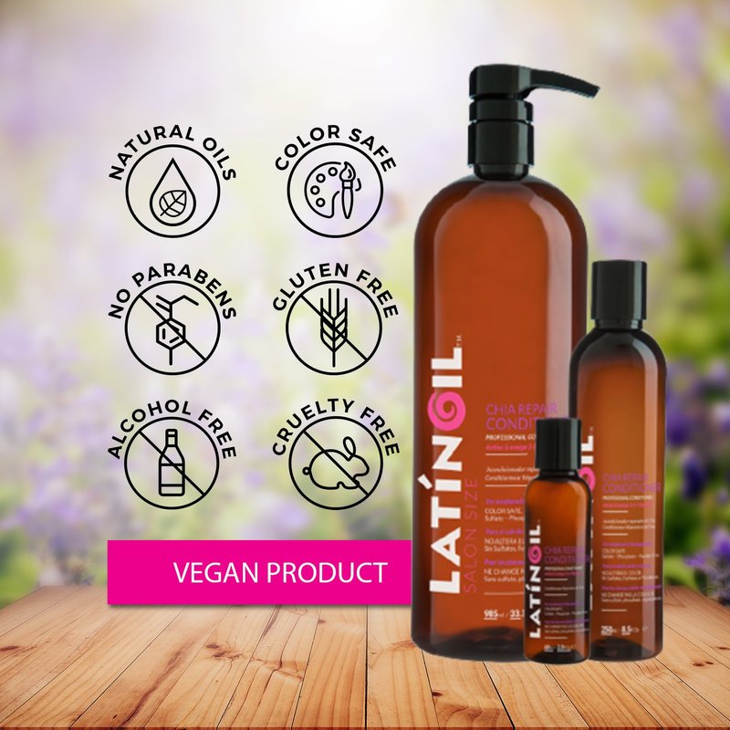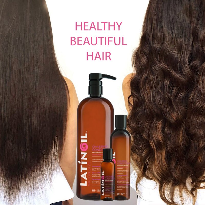LATINOIL’s Chia Repair Conditioner is perfect for restoring weakened and damaged hair. Lock in moisture and vitality with Chia Repair Conditioner. Specially developed to intensely nourish both the hair and scalp with a combination of select essential oils and amino acids.