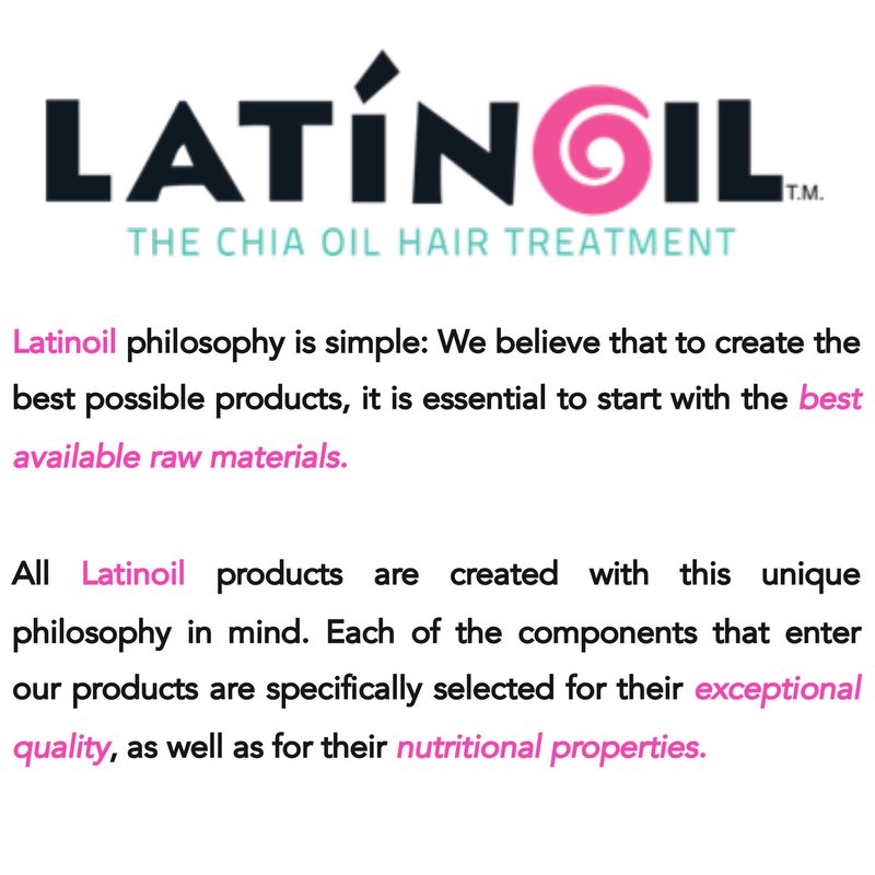LATINOIL Philosophy is simple: We believe that to create the best possible products, it is essential to start with the best available raw materials. All Latinoil products are created with this unique philosophy in mind. Each of the components that enter our products are specifically selected for their exceptional quality, as well as for their nutritional properties.