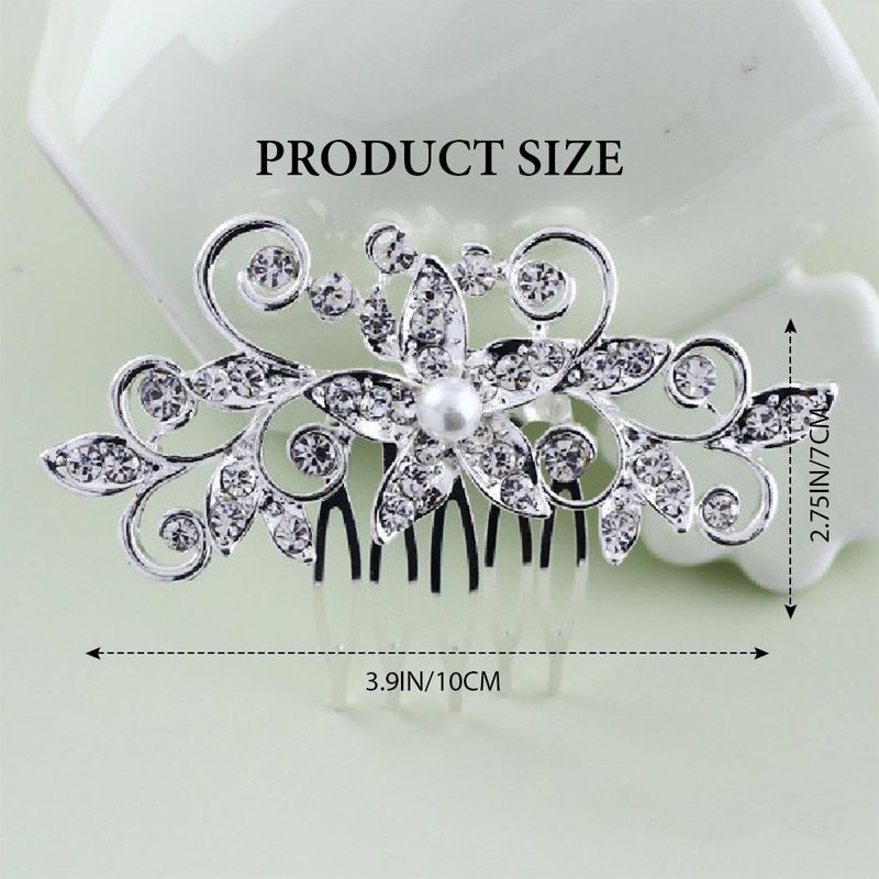 - Rhinestong bridal hair comb is made of exquisite rhinestones, romantic pearl, and soft alloy wire.