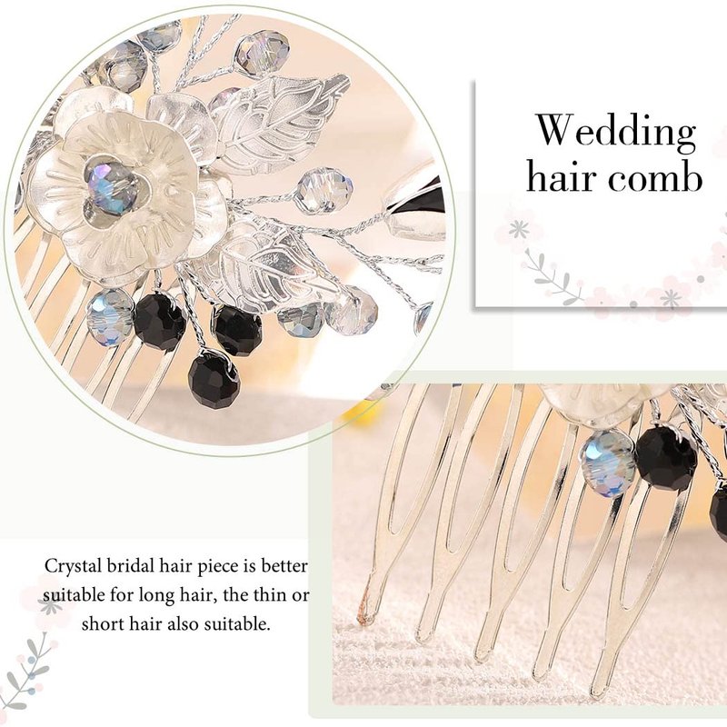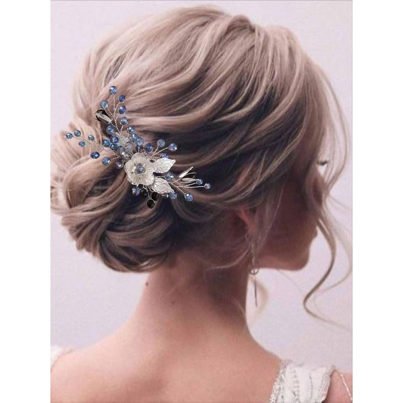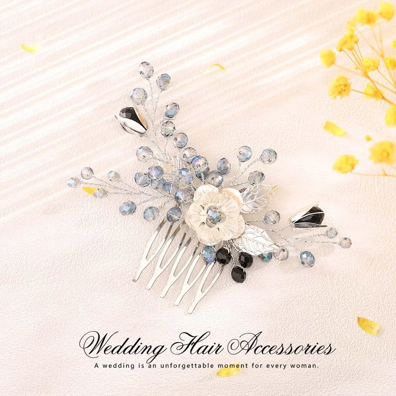 - Crystal hair combs for women with flower, leaf, blue and black rhinestone will perfectly complement most wedding hairstyles.