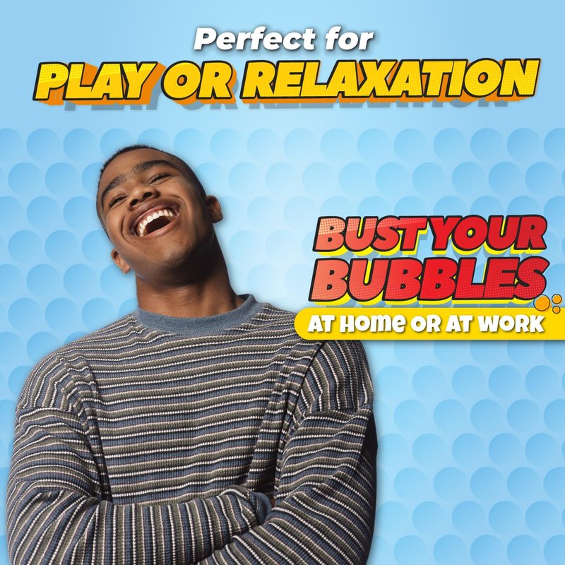 - BUST THOSE BLUES POP BY POP! - When life throws you a curve ball - bust some bubbles! Each bubble provides 10mm worth of therapeutic popping action that will instantly melt away tension and turn your stress into a smile. Perfect for play and relaxation at home or work! Funny if you're looking for a bubble wrap toy, Bubble popper, pop bubble toy, bubble stress toy, or a bubble burst game.