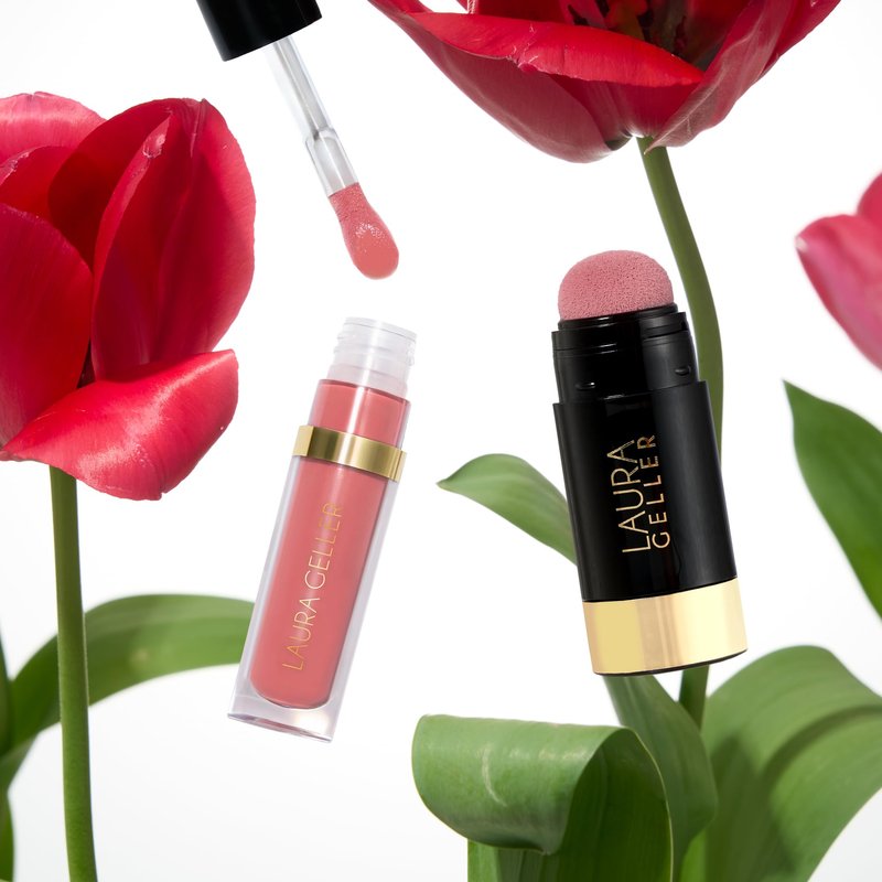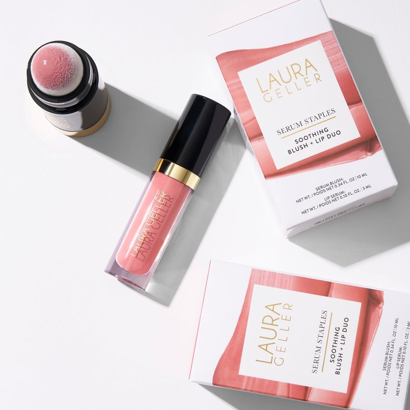 LAURA GELLER NEW YORK Serum Staples Soothing Blush + Lip Duo - Serum Blush Cheek Tint, Practical Pink + Jelly Balm Lip Serum, There She Rose