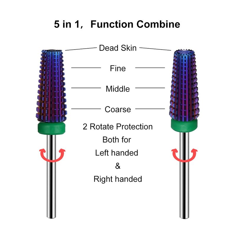 - ★Multi-function Nail Drill Bit: 5 in 1 drill bit, professional for nail artists. You can work the superficial, shorten, fill, cut the whole plate of nails and much more.
