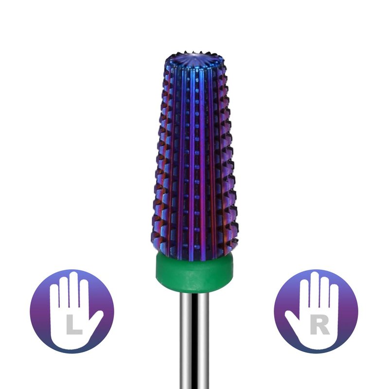 Lavinda 5 in 1 Multi-function Tapered Shape Straight Cut Nail drill bit, Use for both Left and Right Handed, Professional Carbide Tungsten Steel bits for Acrylic Nail Gel Fast Remove (Coarse, Purple)
