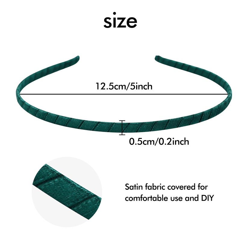 - Color: white, black, purple, pink, hot pink, light pink, navy blue, brown, light blue, dark green, wine red, green, blue, red, lavender, watermelon red, gray and orange satin covered thin metal headbands