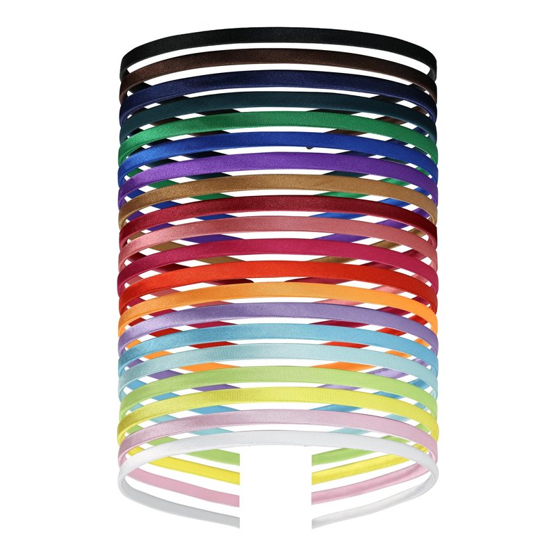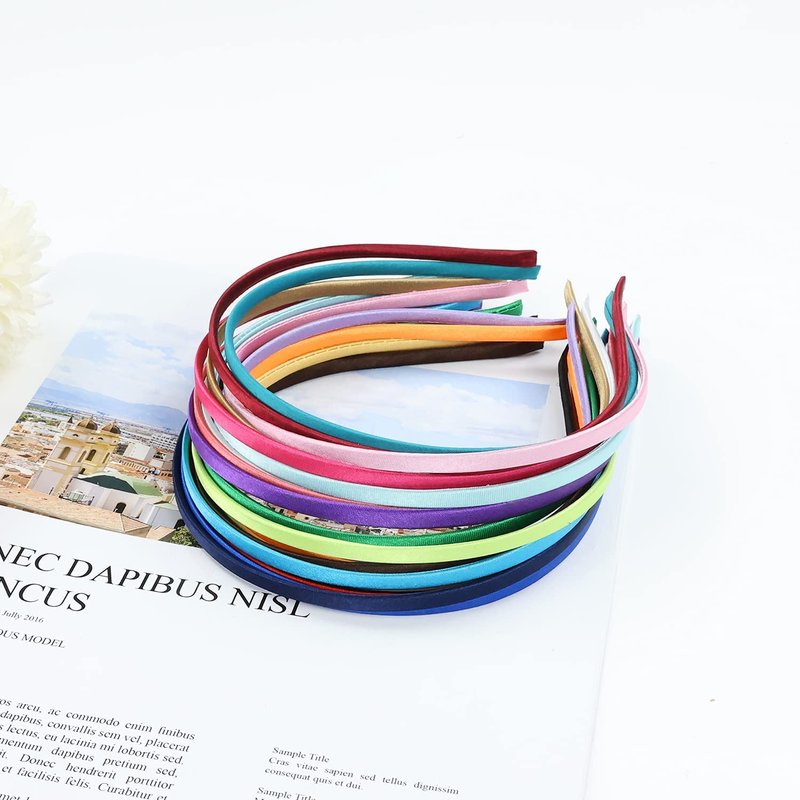 Lawie 20 Pack Colorful Plain Blank Cloth Satin Fabric Covered Slim Thin Hard Metal Headband Simple Skinny Wire Hair band Elastic Hair Hoop Holder Clasp Tiara Crown Craft DIY Accessories for Women