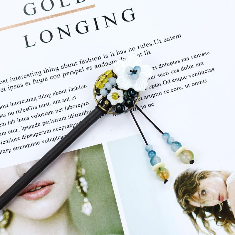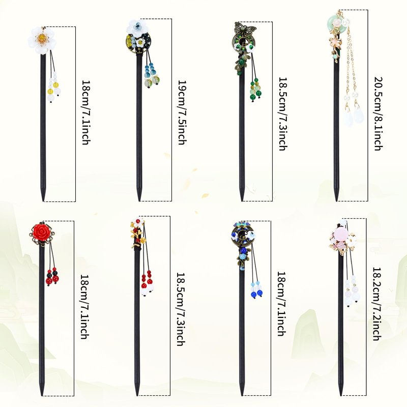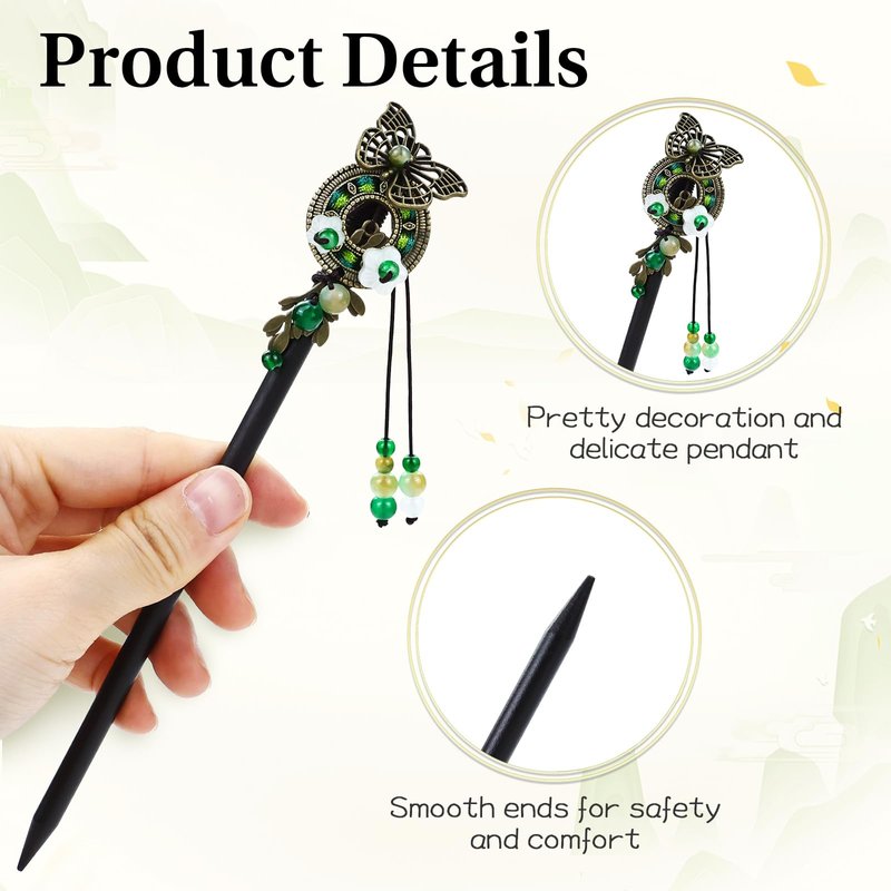 - [Wood Hair Sticks]: Made of natural wood, metal, and beads, these hair sticks are eco-friendly and durable. The combination of wood and gemstones/beads adds a unique touch of elegance to your hairstyle.