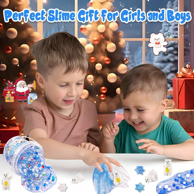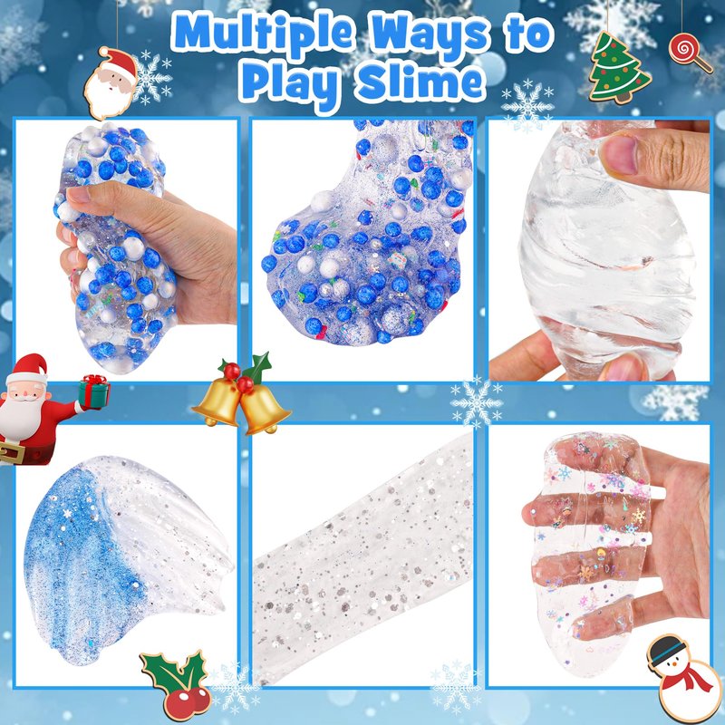 - ☃️【Slime Party Favors for Kids】This clear slime kit with a wide variety of slime add-ins and cute slime charms, it is a Christmas party favors for kids and a great gift choice for all kinds of festivals, birthdays, Christmas, Halloween, Easter.