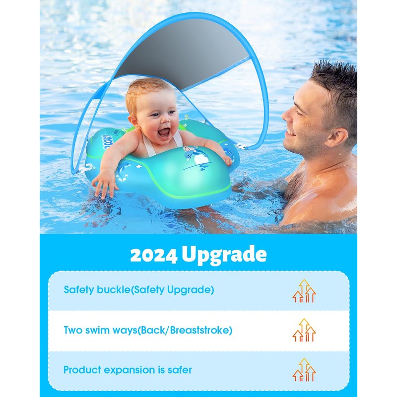 - 【Removable Canopy】The baby float for pool come with a breathable and removable UPF50+ sun canopy to protects baby’s skin away from sun,enjoying summer time anytime,anywhere