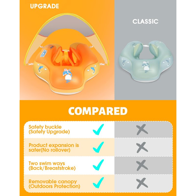 - 【Removable Canopy】The baby float for pool come with a breathable and removable UPF50+ sun canopy to protects baby’s skin away from sun,enjoying summer time anytime,anywhere