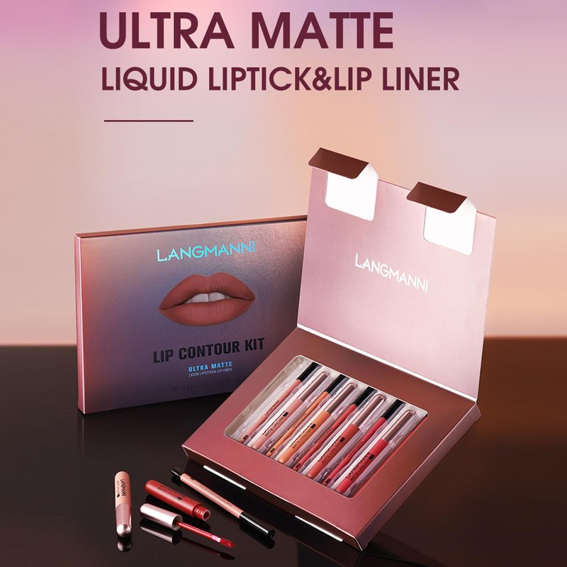- Matte Finish Lip Gloss + Lip Liner Set: This 12-piece set offers a perfect combination of matte lip gloss and lip liner for a complete lip makeup look.