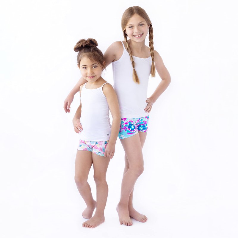 Whether your little one leaps across a stage or tumbles at the gym, Layla Dance Shorts will keep up. These super soft and stretchy active shorts are designed to flex with her best moves. The wide waistband stays smooth and flat so your little one can stay comfortable and confident for any activity. And she'll love the vibrant colors and foil prints. Pair them with our Layla Racerback Crop top for a perfectly coordinated look.All Lucky & Me products are certified to OEKO-TEX Standard 100, which means they are tested and confirmed free of harmful substances, finishes, and chemicals. So when you buy our products you can be sure they are safe for your children. Our products are ethically made. We choose our partners carefully and all factories are WRAP, Sedex, or SA8000 certified.