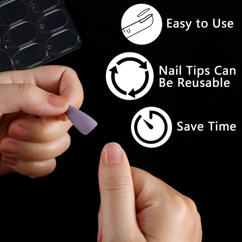 - Quick Operation: Laza nail glue tabs are easy to remove and do no harm to both nail bed and false nail tips, making your press on nails reusable. Just prep your nails, choose a nail tip with the right size, and press it for about 10 seconds. Make sure to use alcohol or acetone prior to applying the tabs, and they will be secure and last.