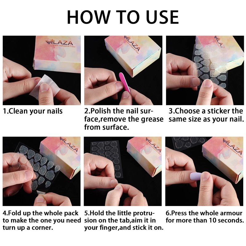 Laza Means What ♥ Get nice quality product at a reasonable price. ♥ Excellent customer service with a high satisfaction rating. Your dedicated customer service will ready to help you with enthusiasm and patience within 24 hours.(Except Legal Holidays) ♥ 30-days refund and resend guarantee. Resend out your parcel usually needs 7-15 days. ♥ Reliable Amazon Logistics as the carrier. If you can't receive the parcel or the item was broken when it come, please contact Amazon Customer Service on Amazon.com and us at once. Notice Keep away from water within an hour and avoid keeping your hands in water too long. Difference Between Glue and Sticker Damage Rank: Nail glue>Super sticky nail tabs>Normal nail tabs Long Lasting: Nail glue>Super sticky nail tabs>Normal nail tabs Using nail stickers, you could peel off and press on the false nail any time. Feature Suit for special occasions, such as for nail art competitions or unplanned special occasion (Date/Party/Festival/Wedding/Show) *Brand New* If the product is used or damaged or the package of product is damaged, you cannot refund. How to Use 1. Clean nails with the mini file/the manicure stick. 2. Select the correct size nails for each finger in advance, then it will not fold in corners. 3. Peel the tabs off, then apply gel glue stickers to acrylic nails. Press on & hold for 15 seconds. Tips for Remove Put your nails in warm water for 2 minutes and nail sticker can be removed easier. Do not remove it abruptly and it may cause harm to your nail surface. Content 50 pack nail glue for acrylic nails (total 1200pcs), 24 stickers for every sheet. All in one OPP bag.