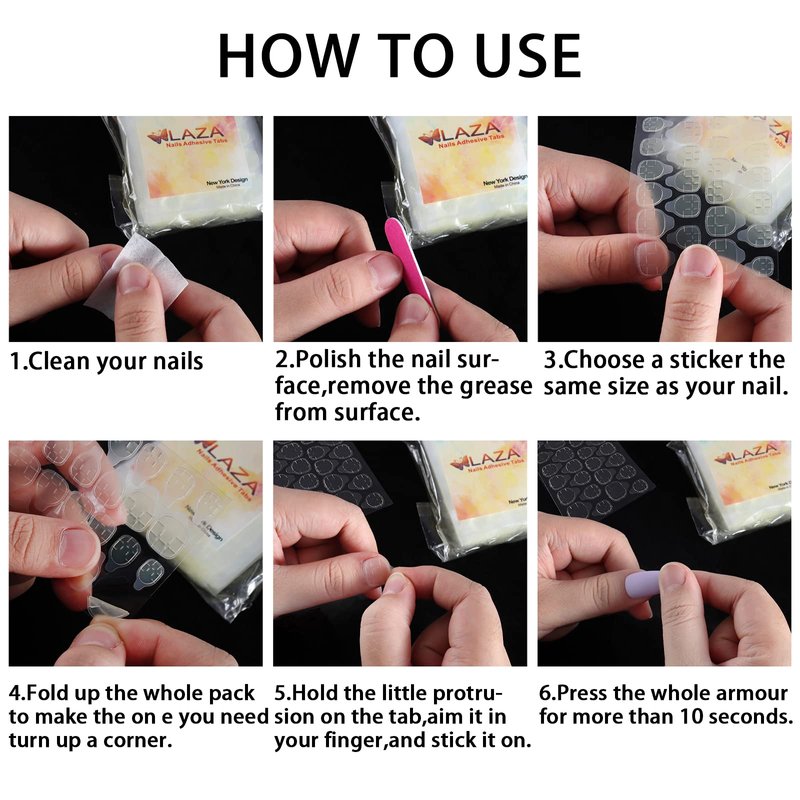 Laza Means What ♥ Get nice quality product at a reasonable price. ♥ Excellent customer service with a high satisfaction rating. Your dedicated customer service will ready to help you with enthusiasm and patience within 24 hours.(Except Legal Holidays) ♥ 30-days refund and resend guarantee. Resend out your parcel usually needs 7-15 days. ♥ Reliable Amazon Logistics as the carrier. If you can't receive the parcel or the item was broken when it come, please contact Amazon Customer Service on Amazon.com and us at once. Notice Keep away from water within an hour and avoid keeping your hands in water too long. Difference Between Glue and Sticker Damage Rank: Nail glue>Super sticky nail tabs>Normal nail tabs Long Lasting: Nail glue>Super sticky nail tabs>Normal nail tabs Using nail stickers, you could peel off and press on the false nail any time. Feature Suit for special occasions, such as for nail art competitions or unplanned special occasion (Date/Party/Festival/Wedding/Show) *Brand New* If the product is used or damaged or the package of product is damaged, you cannot refund. How to Use 1. Clean nails with the mini file/the manicure stick. 2. Select the correct size nails for each finger in advance, then it will not fold in corners. 3. Peel the tabs off, then apply gel glue stickers to acrylic nails. Press on & hold for 15 seconds. Tips for Remove Put your nails in warm water for 2 minutes and nail sticker can be removed easier. Do not remove it abruptly and it may cause harm to your nail surface. Content 10 pack nail glue for acrylic nails (total 240pcs), 24 stickers for every sheet. All in one OPP bag.