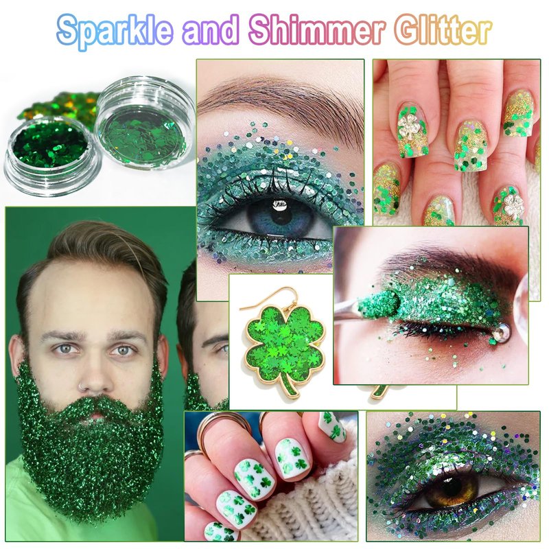 Perfect for St. Patrick's Day as festival glitter ornaments and Christmas Grinch hair accessories.