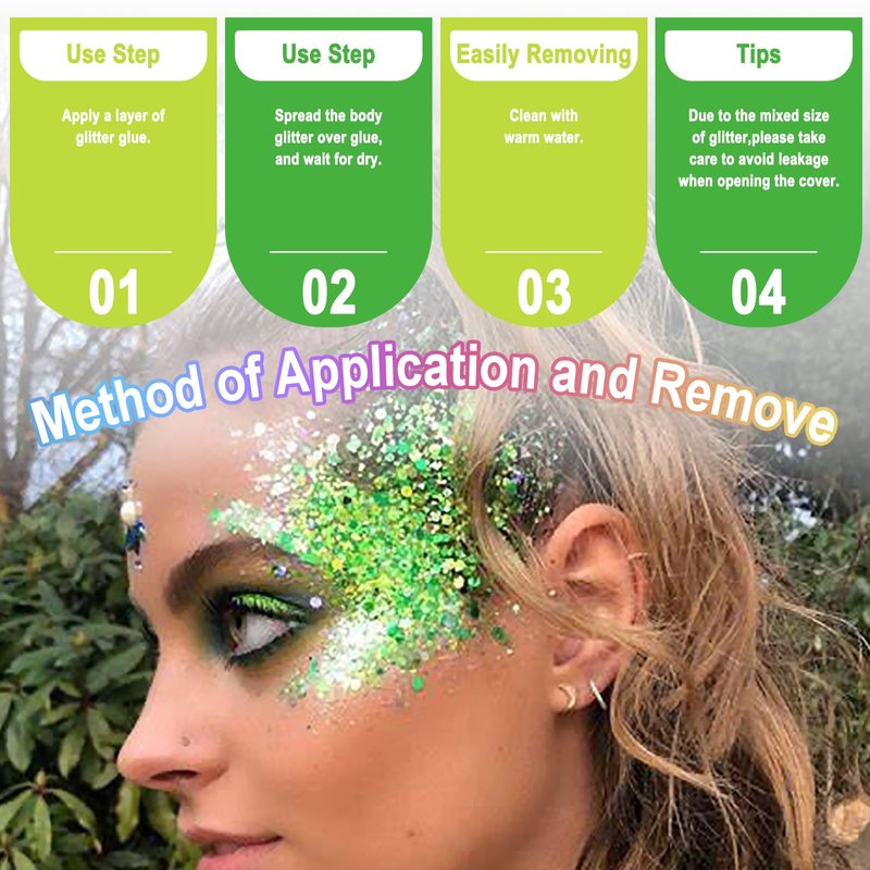 - Safe & Convenient: Our Makeup glitter and glitter primer are skin-friendly. Gently apply glue and put sequins on it, which is very convenient to use and carry. And you only need to wash it with water or use shower gel to remove it easily.