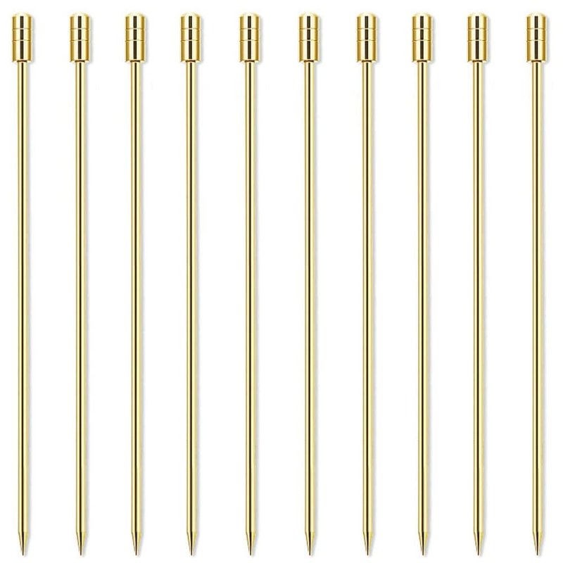 LB-LAIBA Stainless Steel Cocktail Picks Martini Olive Picks for Mojitos Bloody Marys Olives Appetizers Fruits Sandwiches Drink Home Bar Decor 10 pieces (Gold)