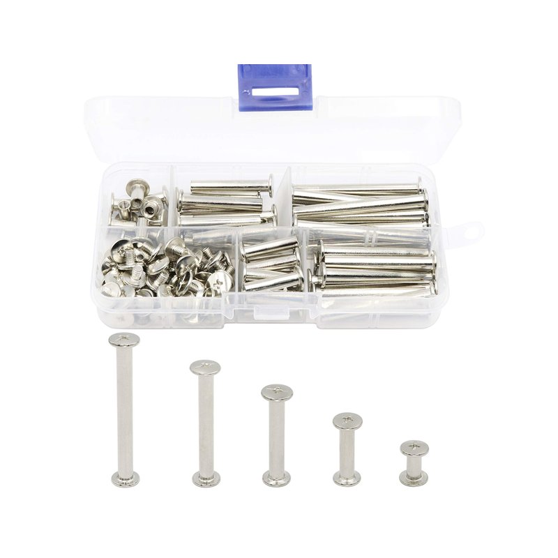 LBY 100pcs Phillips Chicago Screws Binding Screw Posts,M5 x 10/20/30/40/50mm Book Screws,Binding Barrels and Screws Assortment Kit, for Leather Saddles Purses Belt Repair,Nickel-Plated