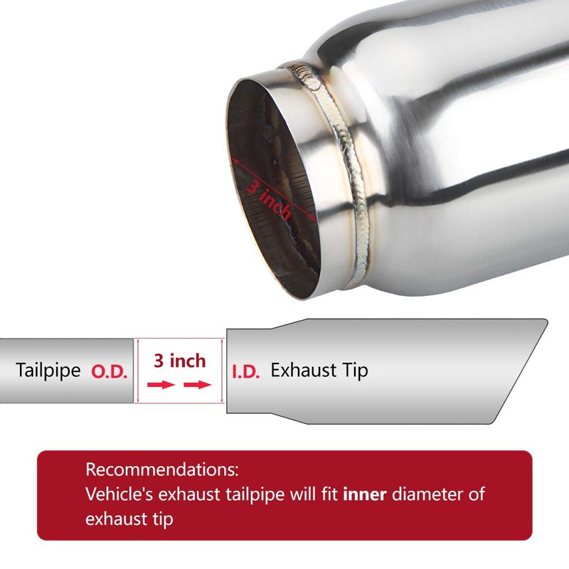 Notice: 3" Inlet 4" outlet Exhaust Tip,Pls check the size before order.