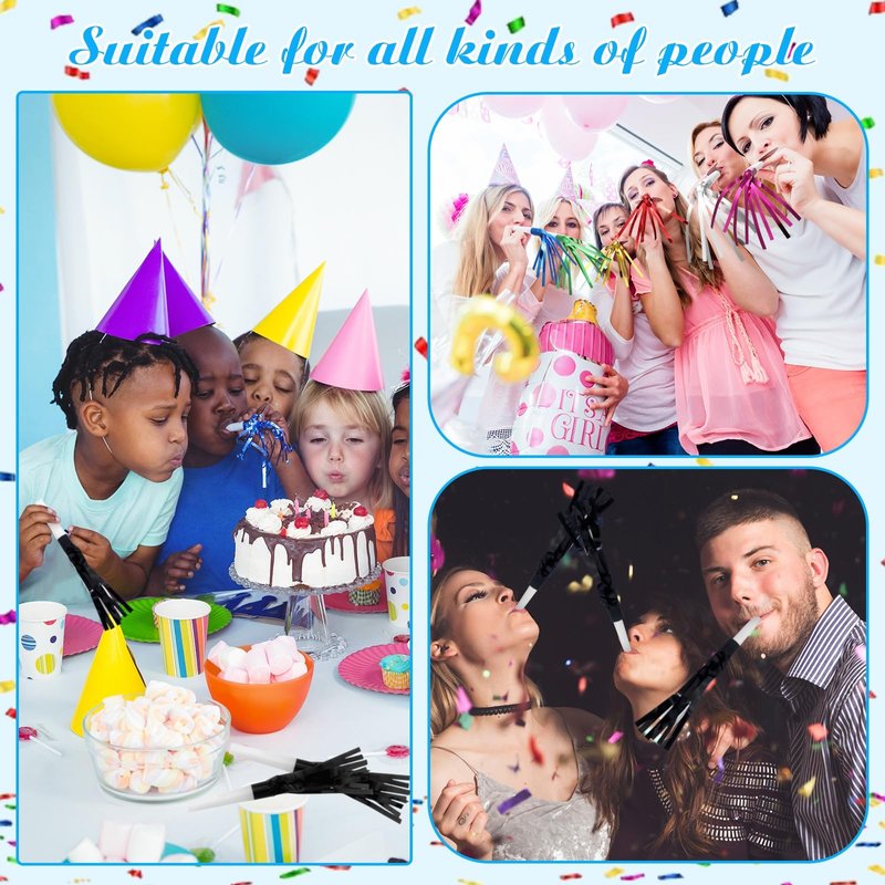 - Versatile: Suitable for all ages, these noise makers can be enjoyed by kids and adults alike, making them a great addition to any party favor bag. Ideal for New Year's Eve, baby showers, kids' birthdays, and other festive occasions.