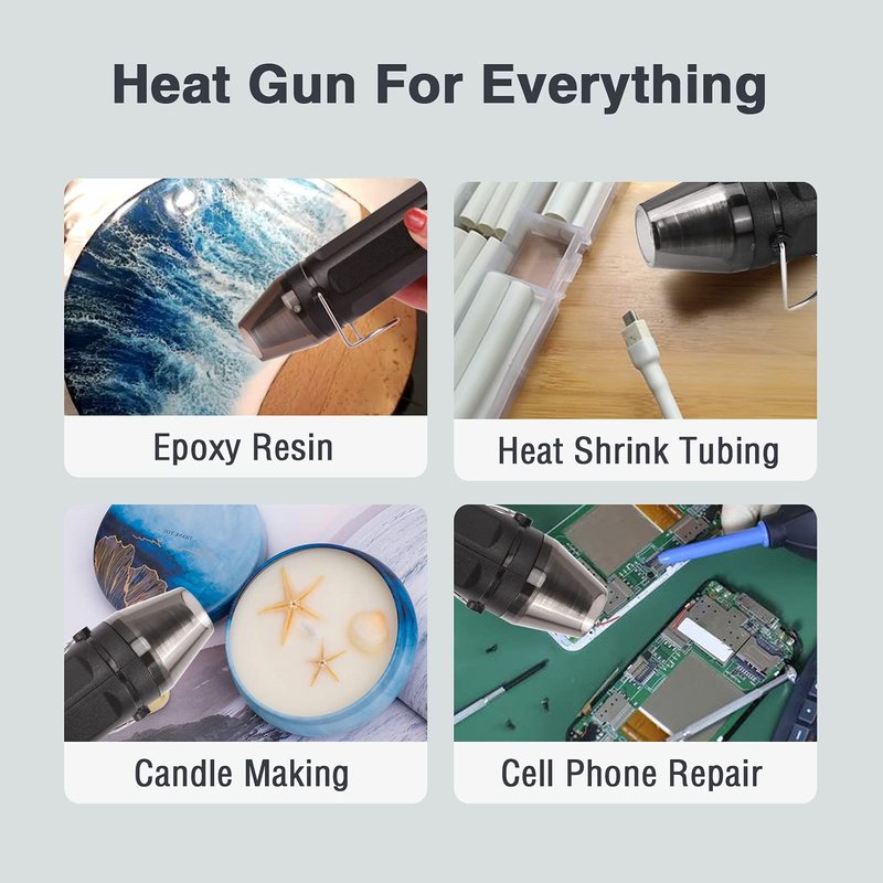 - 【WIDE APPLICATIONS】: Wide use in daily life and perfect for DIY projects. Ideal for shrinking tube & vinyl wrap, candle making, electronics repairing, paint or floor tiles removing and other heating or thawing purpose. It is a great tool for you to make your own handmade work.
