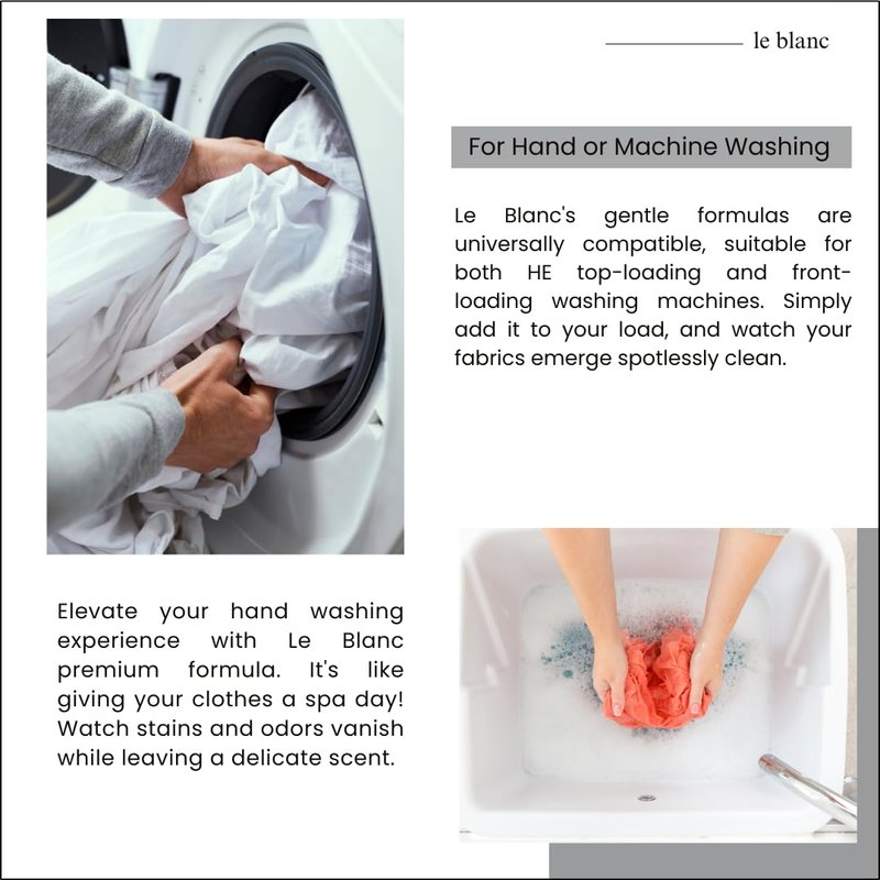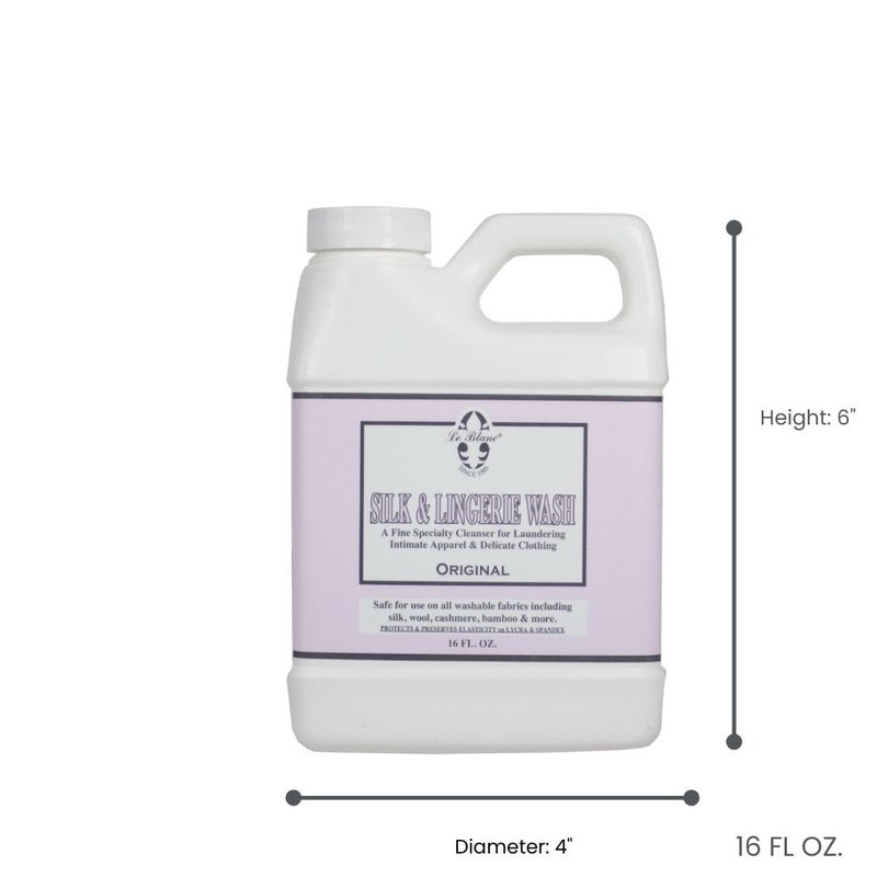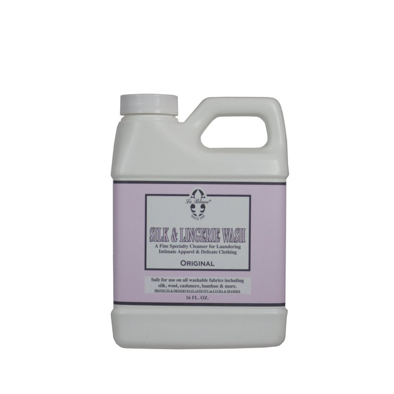 Le Blanc Silk & Lingerie Wash is an exceptional cleanser designed for all washable and colorfast delicate fabrics. It contains properties for cleaning in cold water while lifting tough stains caused by dirt, blood, make-up, and more. Le Blanc Silk & Lingerie Wash is formulated to protect elasticity and preserve the original shape of personal garments.