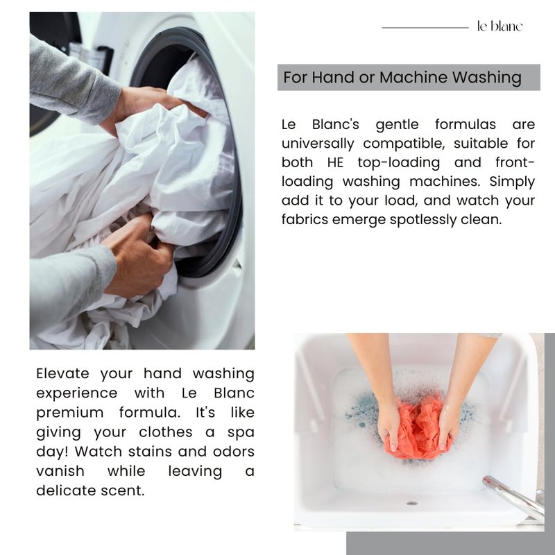 Silk & Lingerie Wash is a concentrated luxury cleanser, specifically formulated to launder all washable and colorfast delicate fabrics with the utmost care. Our advanced formula is designed to effectively clean while preserving the elasticity, softness, and original look of your fine fabrics. Perfect for use in cold water but highly effective in any temperature. Free from bleach, enzymes, phosphates, sulfates, and softeners. Le Blanc Silk & Lingerie Wash is a gentle, biodegradable solution that ensures your fine threads stay in pristine condition. Put your trust in the legacy of Le Blanc and experience unparalleled care for your delicate items with Silk & Lingerie Wash – where luxury meets performance.