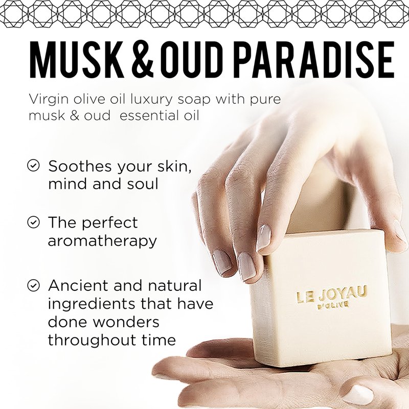 LE JOYAU D’OLIVE Luxury Handmade Soap, 100% All-Natural Soap Bar, Premium Musk & Oud Paradise, Nurtured by Nature for 5 Months, Great as a Gift, Handcrafted Soap for Body & Face, Pack of 1