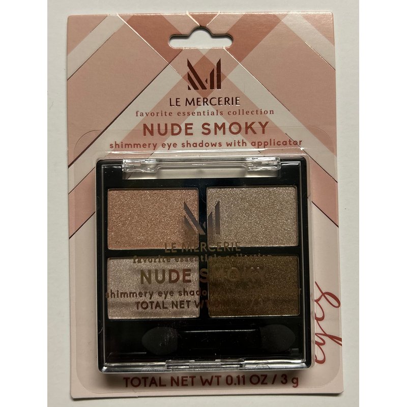 From the favorite essentials collection - nude smoky shimmery eye shadow quad palette with applicator.