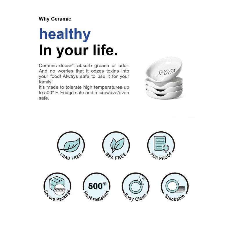 - Excellent Ceramic Material - Made of high-quality ceramic, lead and cadmium free, no odor. Has extremely high heat-resistant properties and can be placed casually next to the stove without worrying if it melts. The weight of the ceramic provides stability, will not move easily when placing spoons.