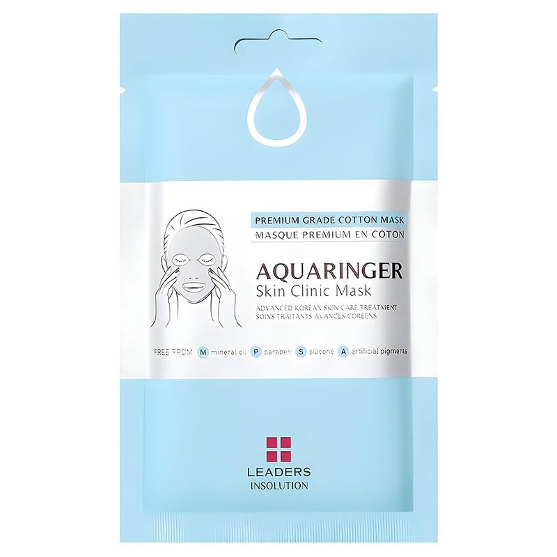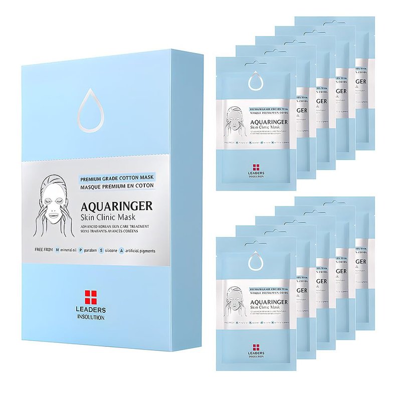 Leaders Insolution | Aquaringer Skin Clinic Mask | Intense Hydration Treatment Mask with Swiss Glacial Water & Power Peptides | Moisturizing & Firming for Dry Skin, Fine Lines (10 Sheets)