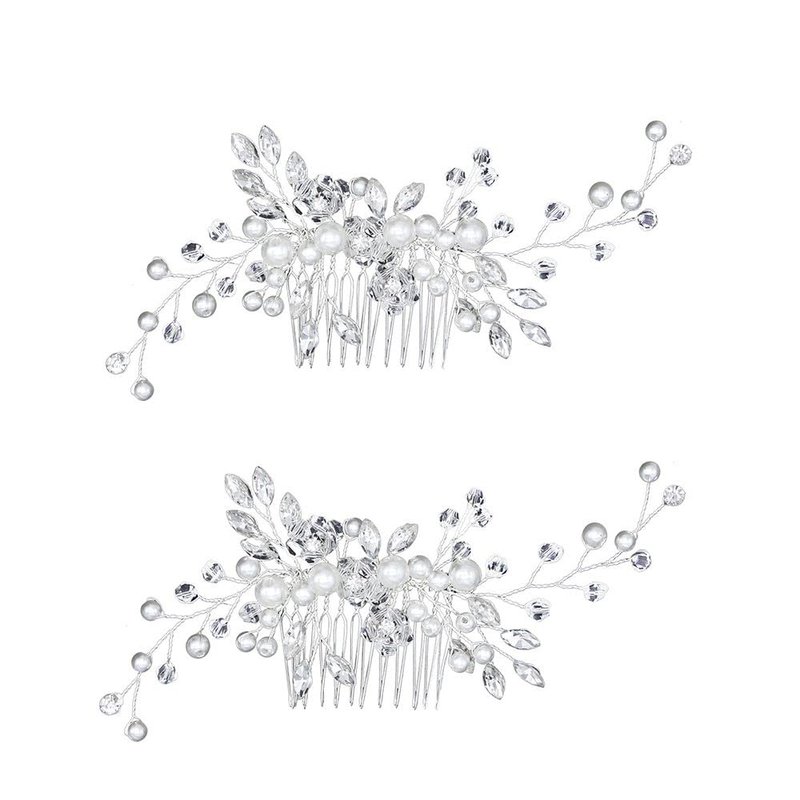 - Package Including: 2Pcs bridal pearl side combs, and each of the hair comb size is 14*6cm (5.5*2.4 inch). The pearls are meticulously arranged to create a stunning and romantic look for the bride.