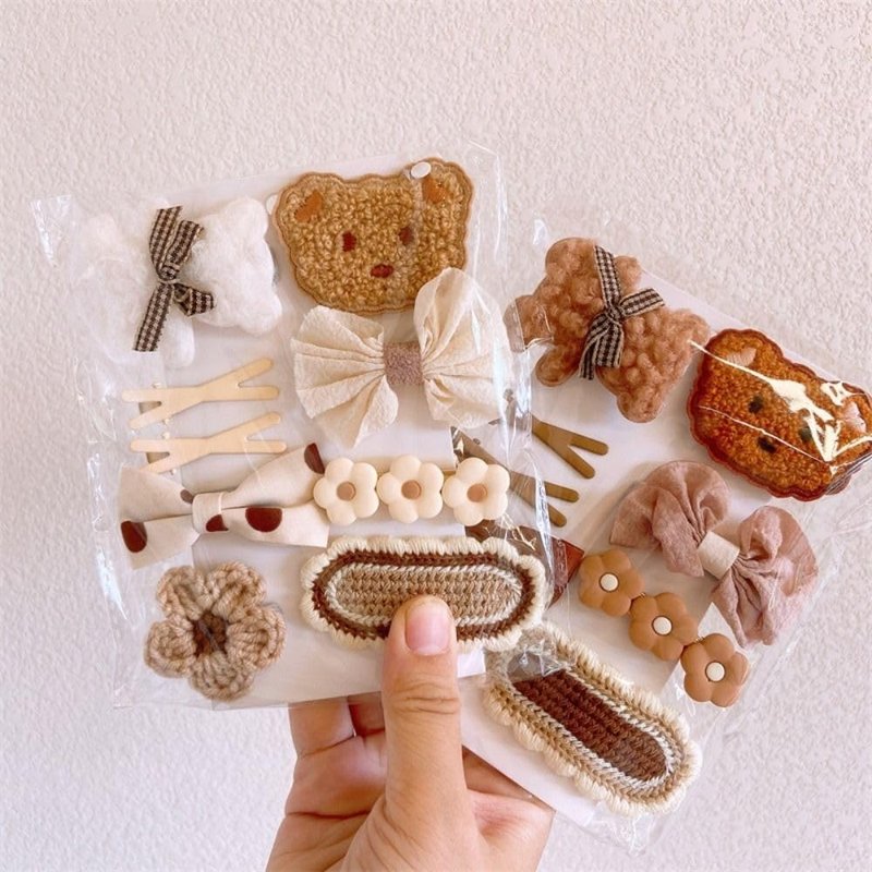- Hair clips set contains 9 pcs multiple patterns hair tie.Bow tie hair clip,Little Bear Hairpin,Bangs Clip,flower Hair clips for girls daily versatile