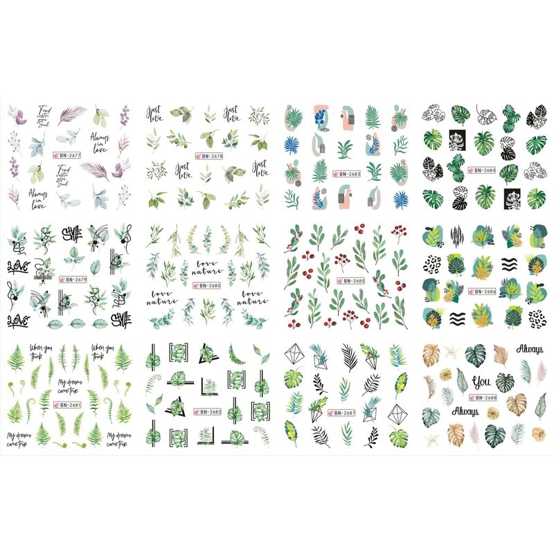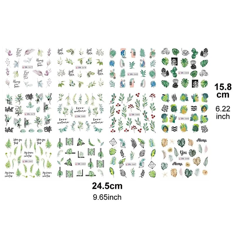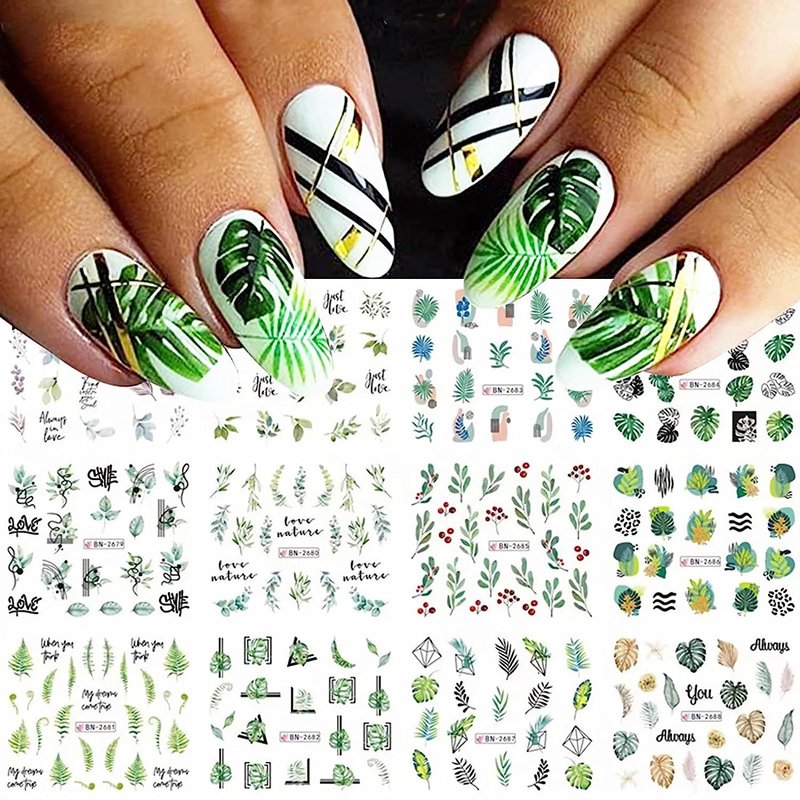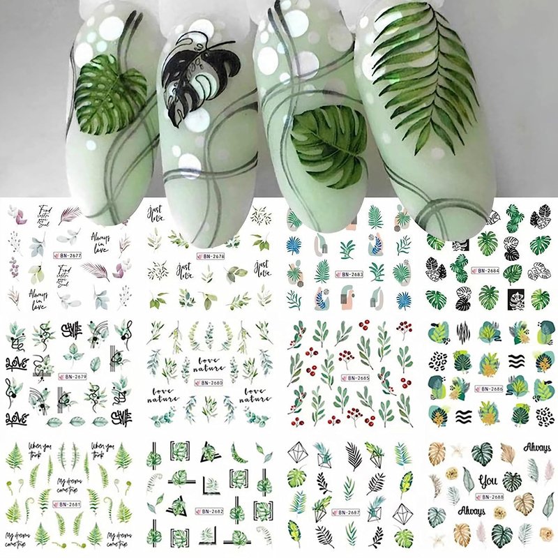 - [Package Contains] You will get 12pcs mixed leaves water transfer nail decals, leaf nail design pattern has a unique design, attractive and creative, these nail decorations for nail art are perfect for fashion and trendy girl. Easy removing, change the pattern any time