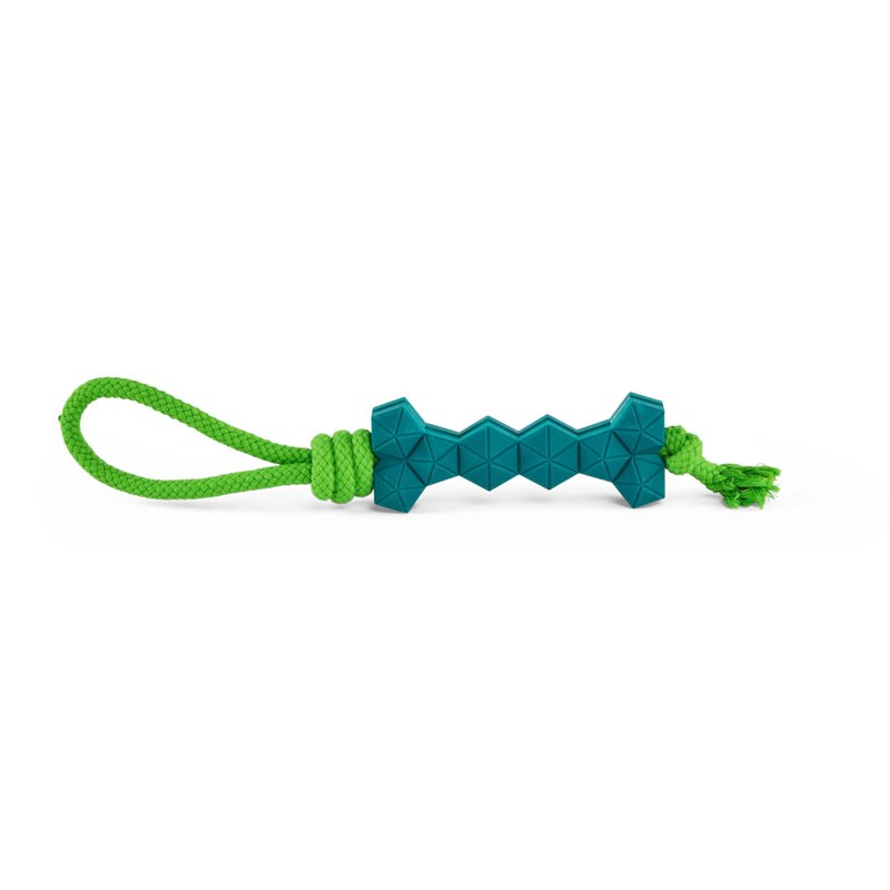 The Leaps & Bounds Rubber Bone & Rope Dog Toy treats your pup to a satisfying texture chew. Helping steer them away from gnawing at shoes and other nono's, this toy keeps them entertained and allows them to safely enjoy their favorite activity.