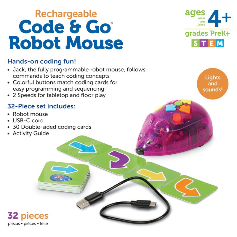Learning Resources Rechargeable Code & Go Robot Mouse - STEM Toys for Kids, Coding Toys for Boys and Girls Ages 4+,Back to School