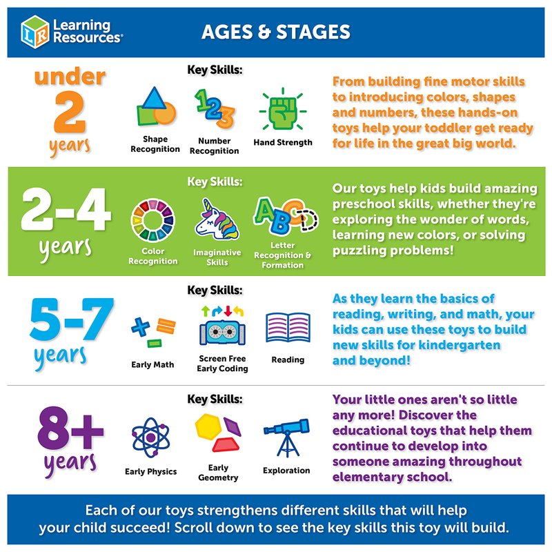 - GIVE THE GIFT OF LEARNING: Whether you’re shopping for holidays, birthdays, or just because, toys from Learning Resources help you discover new learning fun every time you give a gift! Ideal gift for Halloween, Christmas, Stocking Stuffers, Easter Baskets Stuffers or even for Homeschool.