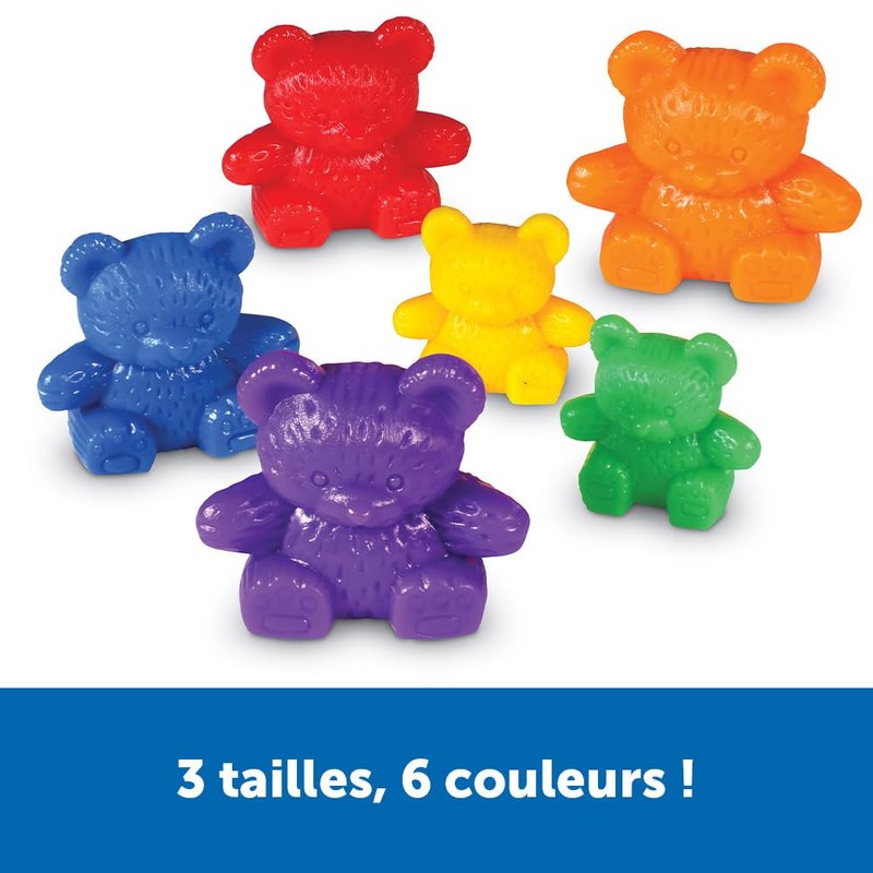 - Bears come in six colors (red, yellow, orange, green, blue, and purple) and 3 sizes offer endless opportunities to sort, group, classify, and pattern.