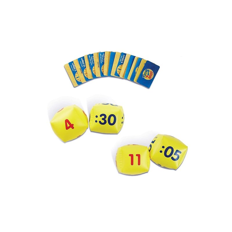 - Set includes vinyl clock mat, removable, color-coded clock hands, hour and minute dice, activity cards, and activity guide