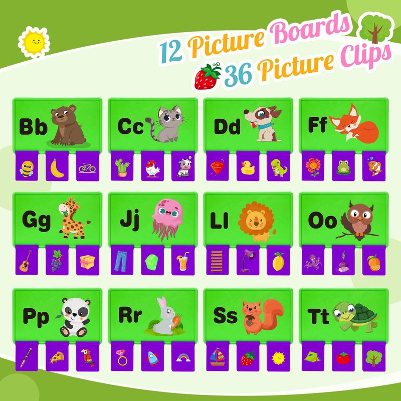 - Educational and Enjoyable: With enough picture clips to complete all the boards at once, the set is perfect for multiple children to use at the same time! Stimulate children's learning interest through engaging in matching games, helping them effortlessly understand that letters are made up of sounds helping children to read and write fluently