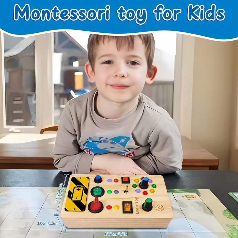 LearnToy Montessori Toys Busy Board for 1+ Years Old - Baby Wooden Sensory Toy with LED Lights Switches & Trumpet - Travel Toy